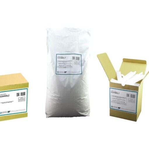 Gli adesivi termofusibili (hot melt) si presentano in forma solida a temperatura ambiente. Il processo di incollaggio si attiva con la fusione del prodotto, che viene inserito in un fusore, sciolto e applicato tramite rullo, ugello o sistema a slot.
