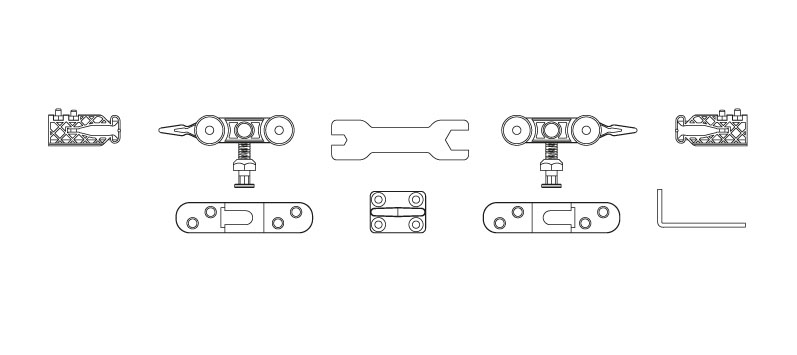 Guarnitura completa per porta con ante scorrevoli. Portata 80 Kg.